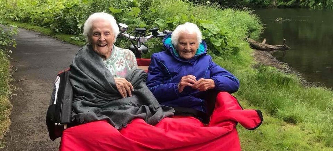 Joyce and Maude out on a ride with Cycling Without Age Musselburgh, Scotland